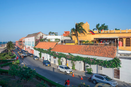 CARTAGENA, COLOMBIA - MARCH 5, 2023: Street in Getsemani neighborhood of Cartagena de Indias, Colombia