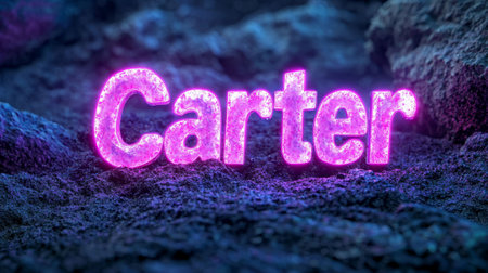 Glowing neon letters spelling currently procrastinating pulsing slowly in cool blue against dark background creating relaxed contrast playful typography modern illuminated style