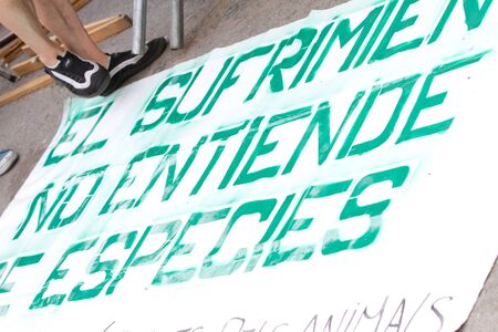 Buenos Aires, Argentina; April 22, 2022: Earth Day protest; poster with the message Not climate change, but human. Environmental activism against global warming.