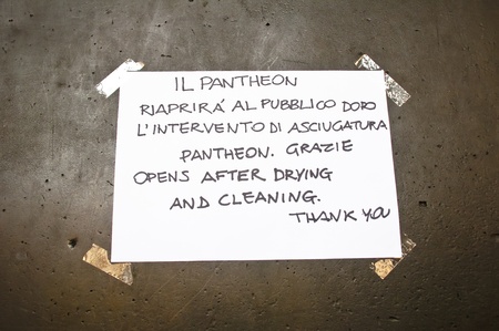 Closed sign the Pantheon, Rome, Italy on October 20, 2011 after the flood
