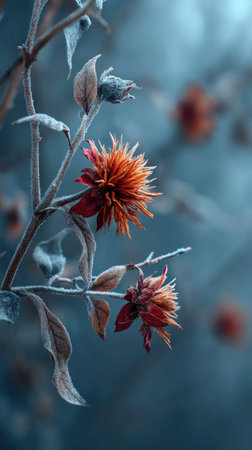 The Safflower in winter, chilling air envelops, a few lingering leaves tremble, still atmosphere, clean.