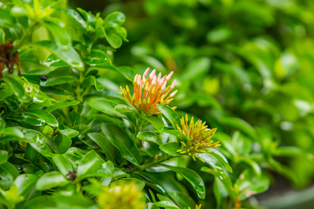 Beautiful yellow flowers in the garden. Shallow depth of field.