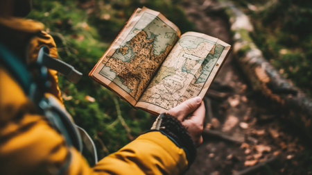 Close-up view of a hiker using smartphones GPS app in mountain travel. In the midst of natures grandeur, the hiker is guided by the GPS app.