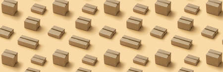 Lots of cardboard boxes pattern on brown background. Template Copy space for text