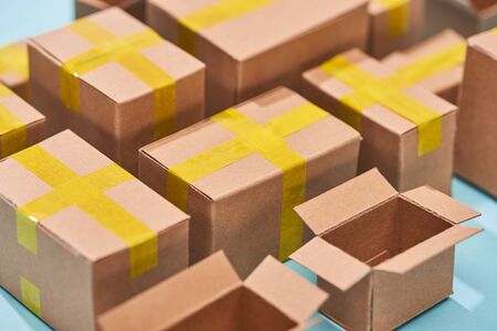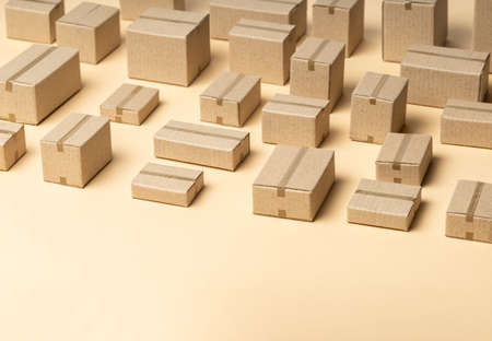 Stacks of cardboard boxes The concept of delivery and unloading of goods, cardboard boxes. Heap of packings from paper, carton