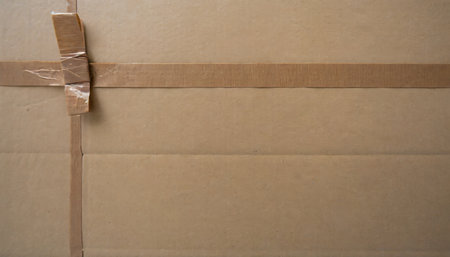 Closed brown kraft cardboard box with tape, showcasing simple and clean design. box is positioned to create soft shadow, evoking sense of minimalism and functionality