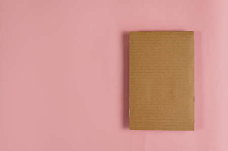 A rectangular piece of brown cardboard against a pink background. Copy space for text and design elements. top view.