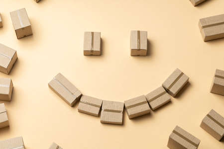 Smiling face from cardboard boxes on a light brown background