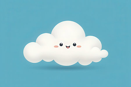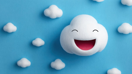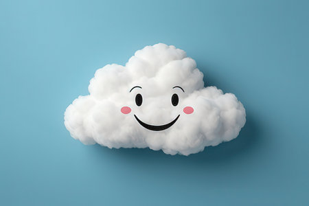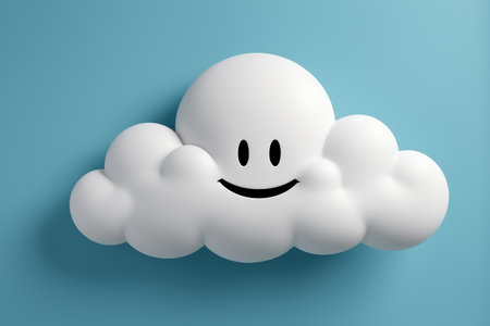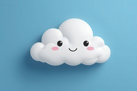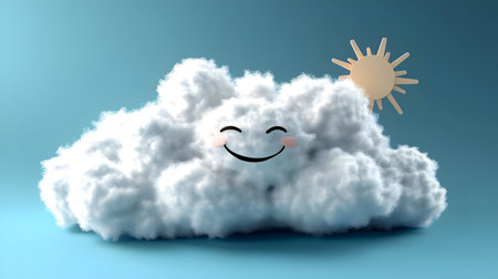 Cute smiling cloud on a pastel blue background, representing happiness and positivity, ideal for children s design and cheerful concepts