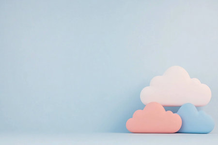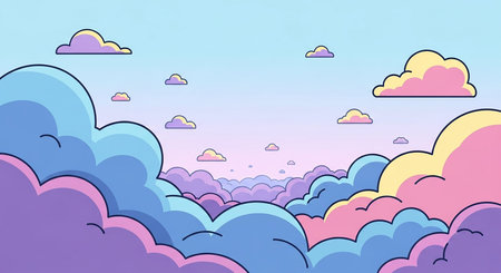Soft pastel clouds on a blue background, perfect for nursery decor, children s rooms, and playful ambiance, evoking feelings of serenity and creativity