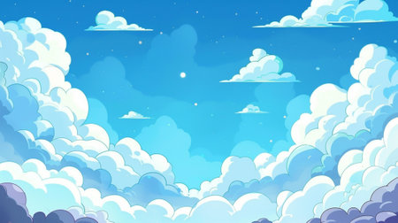 A dreamy expanse of fluffy white clouds floats gracefully against a tranquil blue backdrop, evoking a sense of peace and wonder. The soft, billowy shapes of the clouds create a whimsical atmosphere, perfect for inspiring creativity and relaxation.