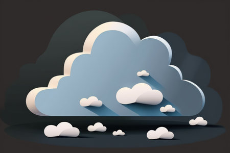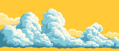 An illustration of a cloudy paper cut art, modern illustration with volumetric clouds on a blue sky background.
