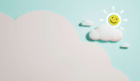 Colorful sun,sky and cloud for baby/kids background with copy-space for your product. Empty space for advertising. Modern abstract 3D cover, Postcard. Minimal style. 3D rendering