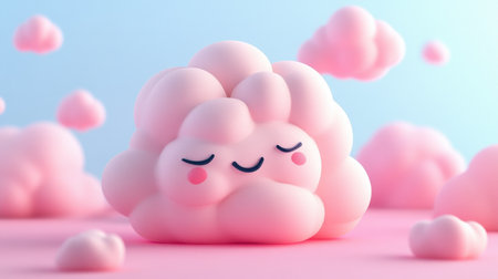A charming pink fluffy cloud character with a joyful expression, radiating happiness. This whimsical illustration embodies a playful and serene atmosphere perfect for childrens themes.