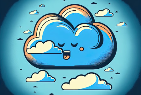 Stylized fluffy white cloud against a vibrant blue background