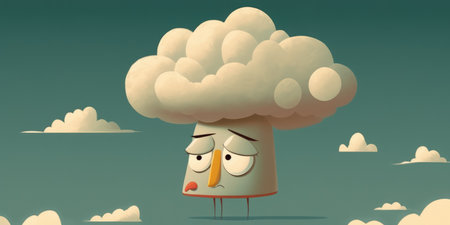 A white cloud with a sad face on it, AI