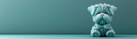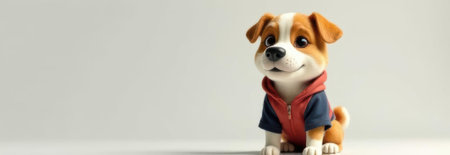 Adorable 3d rendered puppy wearing a hoodie sits on a plain background, providing ample copy space for text or design elements, perfect for web banners, advertisements, or social media posts