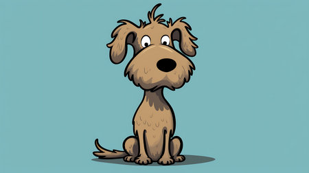 A cartoon dog with brown fur and large ears smiles broadly against a vibrant turquoise background. The image presents a digitally rendered character with stylized features and soft textures. Ideal for use in children's media, advertising, or educational materials, showcasing a cheerful and friendly visual.