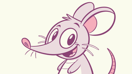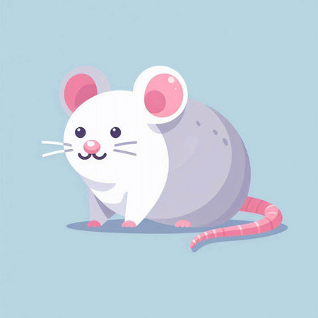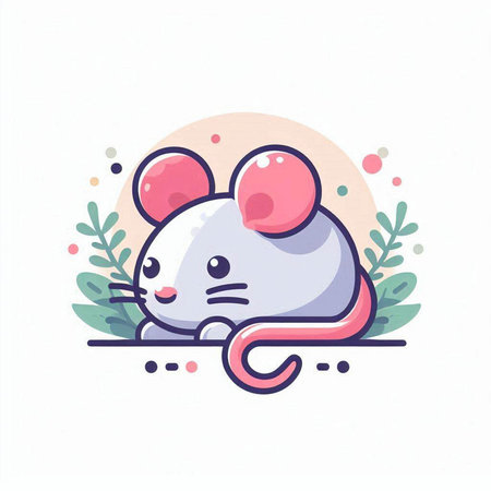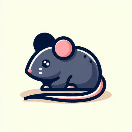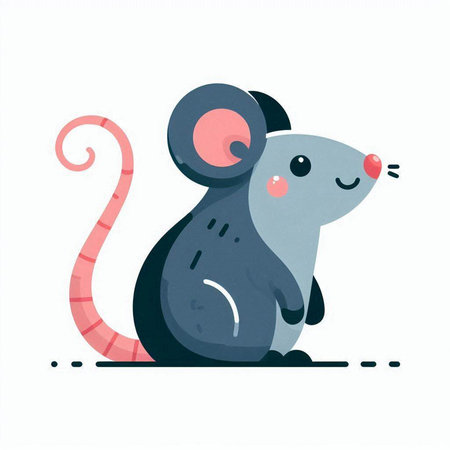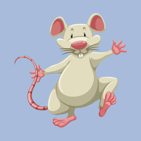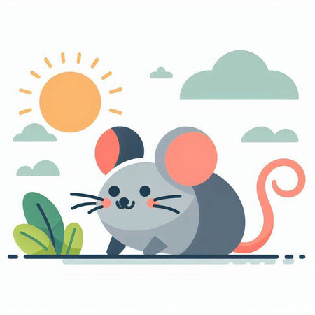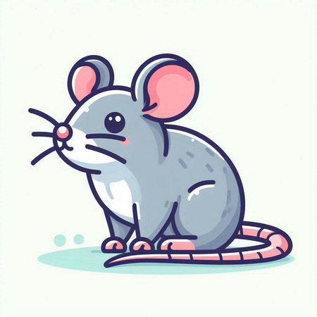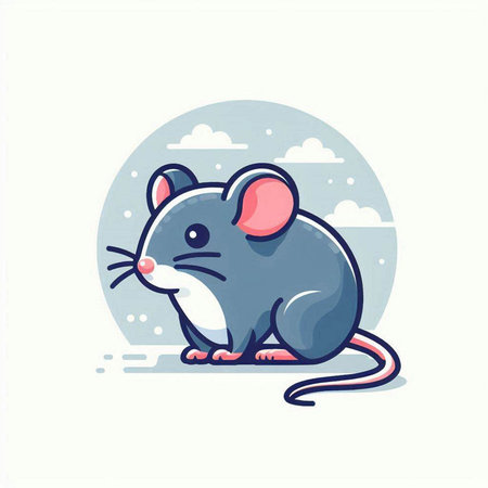 Illustration of a Cute Little Gray Mouse on a Colored Background