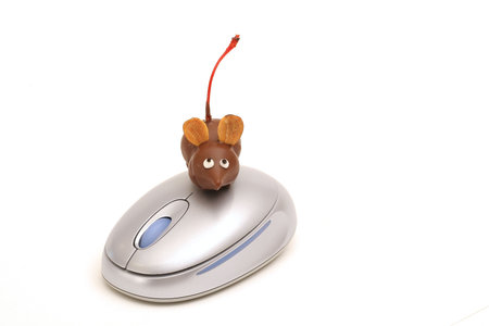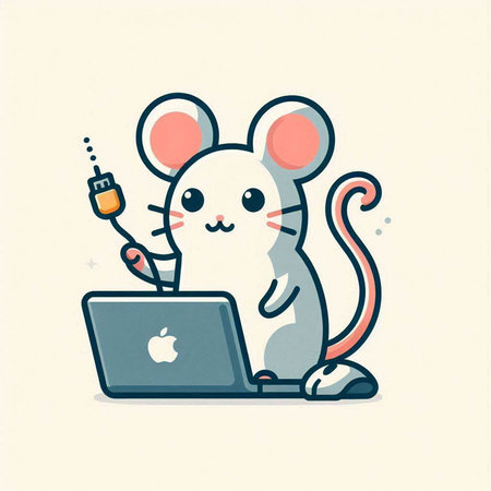 Mouse with laptop and mouse on the white background. Vector illustration.