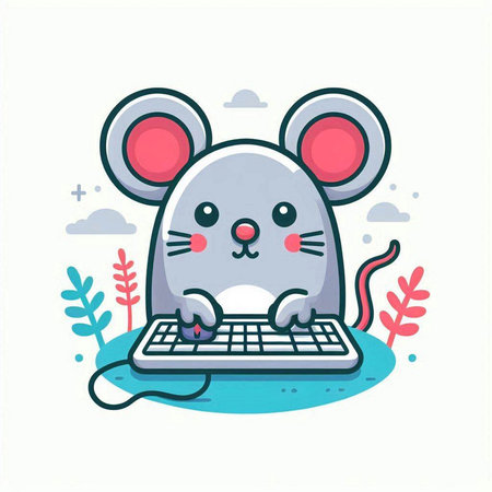 Mouse cartoon with keyboard, mouse and mouse. Vector illustration. Cute mouse.