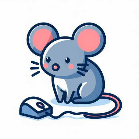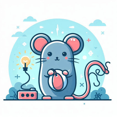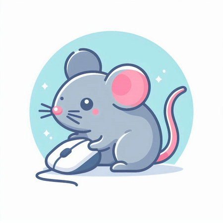 Cute mouse with computer mouse. Vector illustration in flat style.
