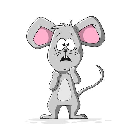 Scared cartoon mouse. Hand drawn vector illustration with separate layers.