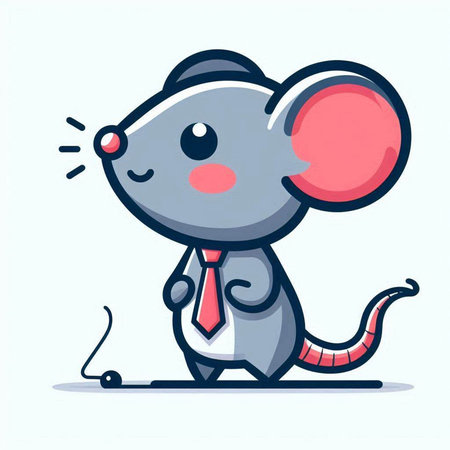 Cute cartoon mouse in business suit and tie. Vector illustration.