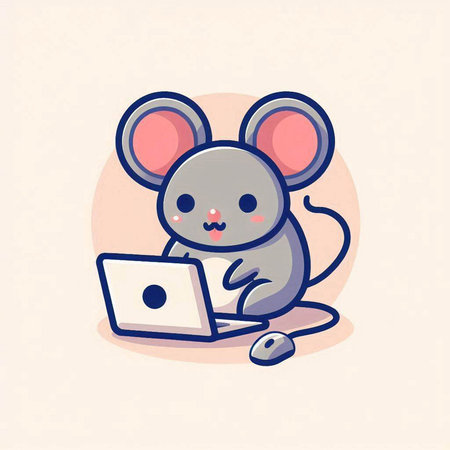 mouse with laptop. Vector illustration. Cute cartoon mouse character.