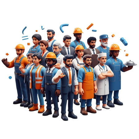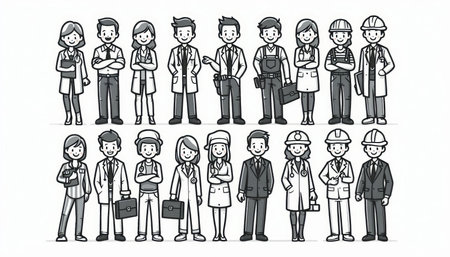 Group of workers of various professions flat vector illustration. Ai-generated image