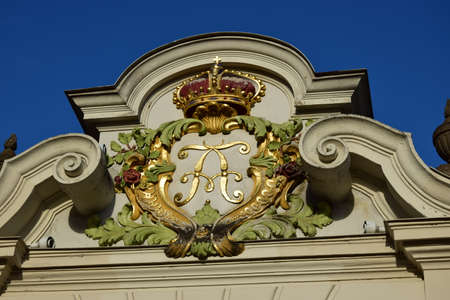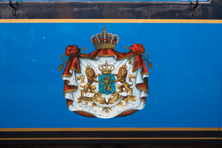 Royal coat of arms on an ancient train wagon at the dutch railway museum in Utrecht