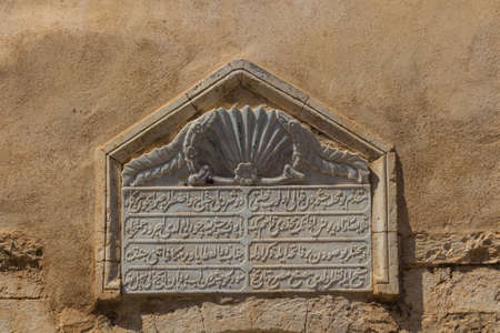 Rethymno, Greece - August 4, 2016: Ancient ottoman plate. The old town of Rethymnon is one of the best-preserved towns of the Renaissance.