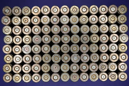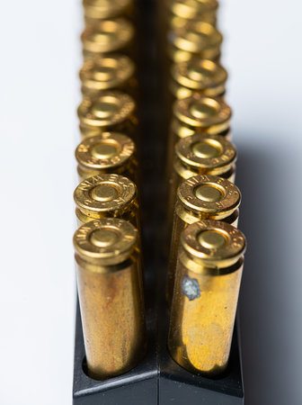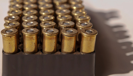 Rows of the shiny bullets with selective focus point
