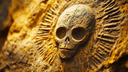 Ancient alien carving on stone closeup cave light etched symbols eerie history tone lost civilization