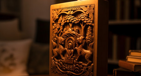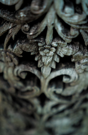 Macro Photography of Intricately Carved Wood. AI Generated.