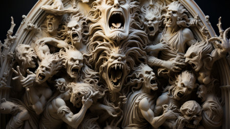 A mesmerizing display of intricate carving and sculpting, the relief sculptures of long-haired individuals evoke a sense of ancient art and powerful artifacts frozen in time