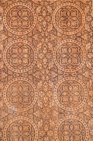 thai art carving on plank wood