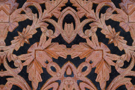 Texture arabic flower pattern on the stone wall. Texture on the concrete surface is orange. Background in arab style, close-up.