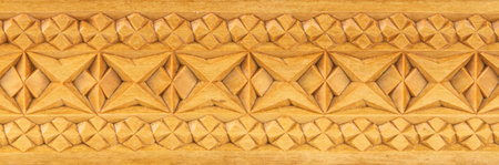 Decorative wooden textured fragment of interior decoration. Carv