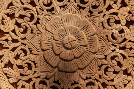 Asian wood carved with flower ornament design