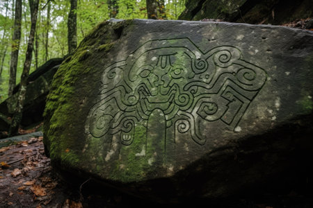 mysterious symbols carved on mountain rocks, created with generative ai