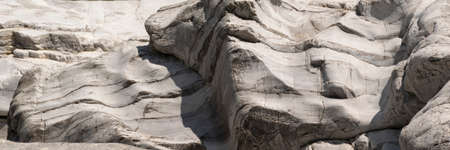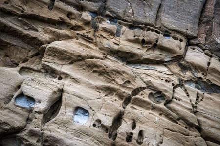 Rock texture background. Closeup of the sedimentary rock in the cliff at the seaside