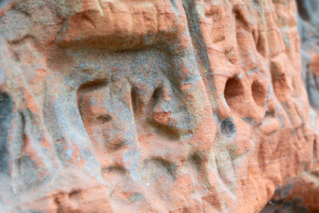 Intricate rock carvings showcasing unique designs on textured surfaces
