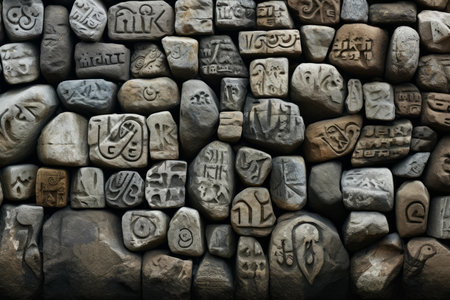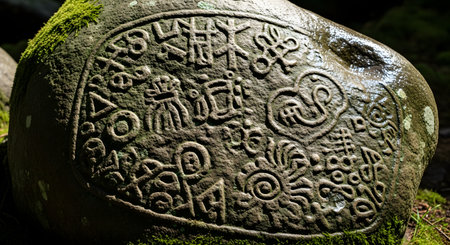 Intricately carved stones with ancient symbols and mystic patterns