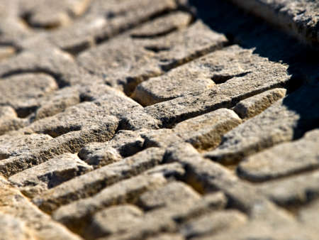 Ancient Arabic calligraphy on the pavement. Shallow depth of field.