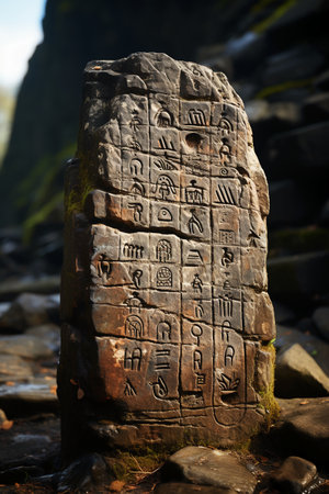 Ancient carved stone with mysterious symbols