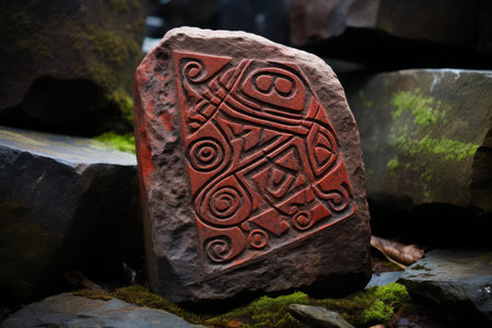 Intricately carved stones with ancient symbols and mystic patterns