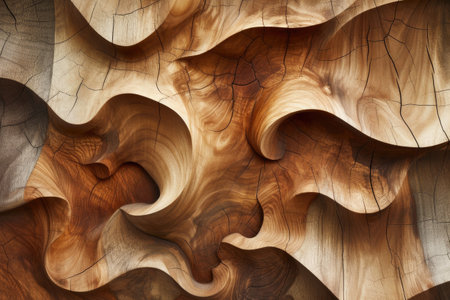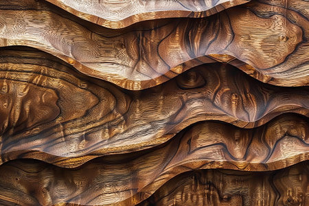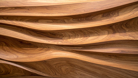 Abstract texture of wooden waves highlighting natural grain patterns and warm tones, creating an organic and flowing feel