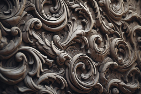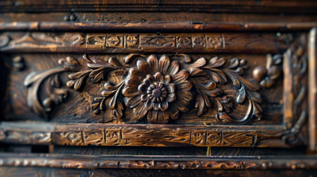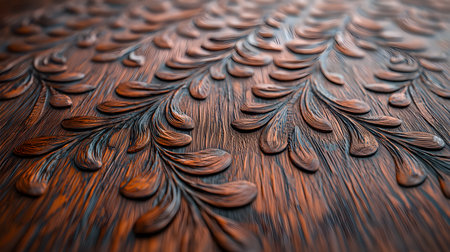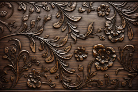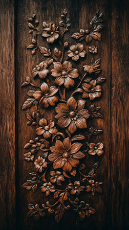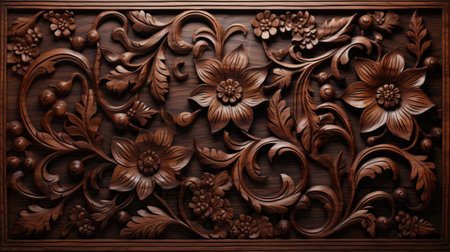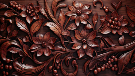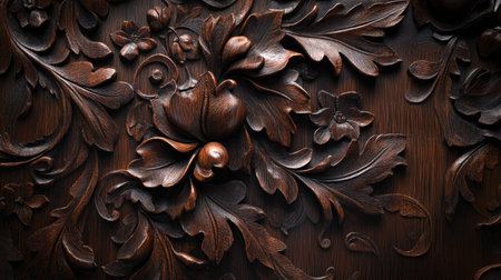 Intricate Wooden Floral Carving Dark Brown Elegant Design Pattern Texture Background art rich deep