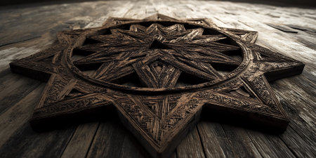 Intricate Wooden Star Pattern Dark Brown Rustic Design Antique Carving art old craft shape style